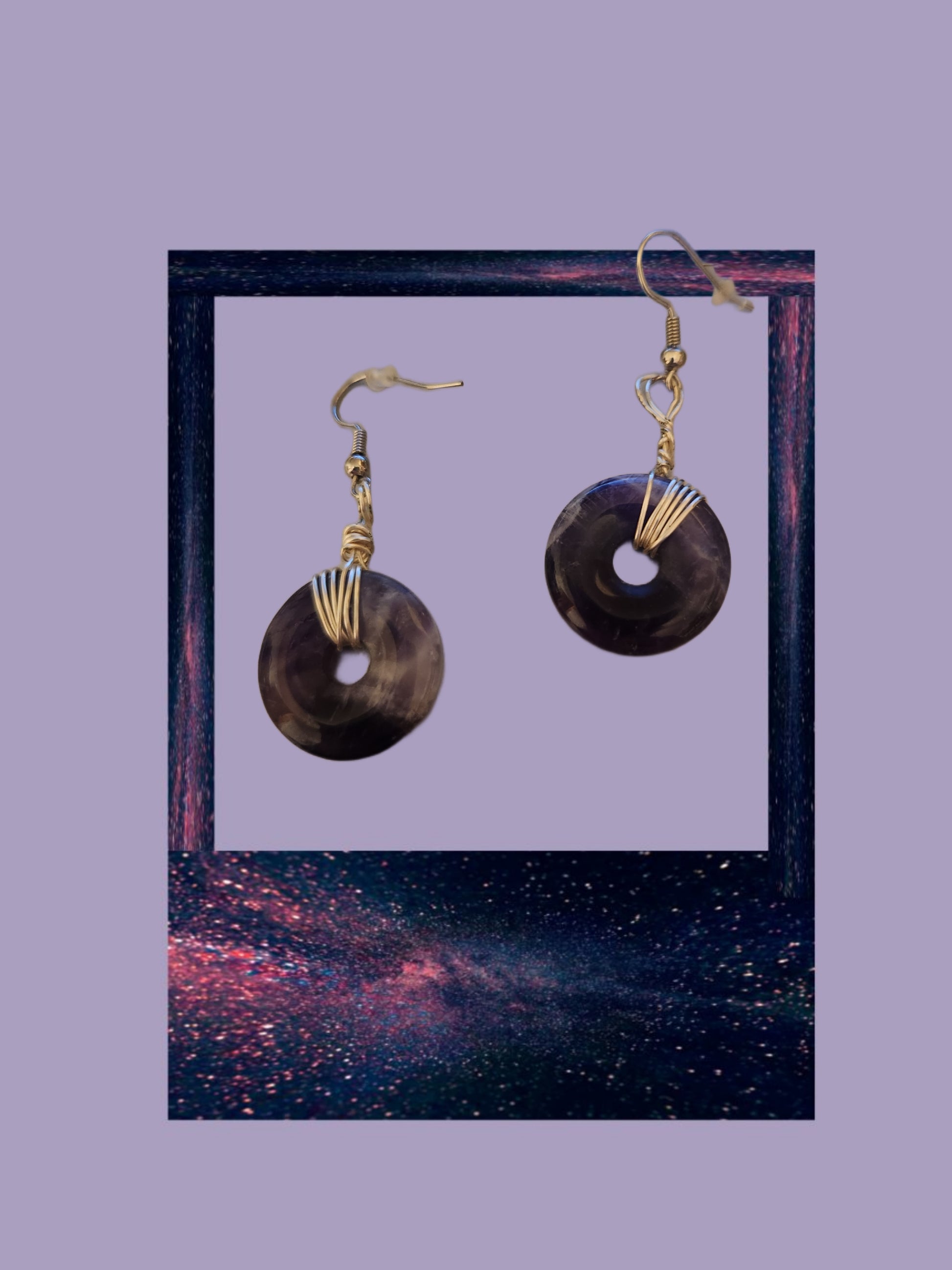 Genuine amethyst earrings in a donut shape. Wrapped in silver wire.